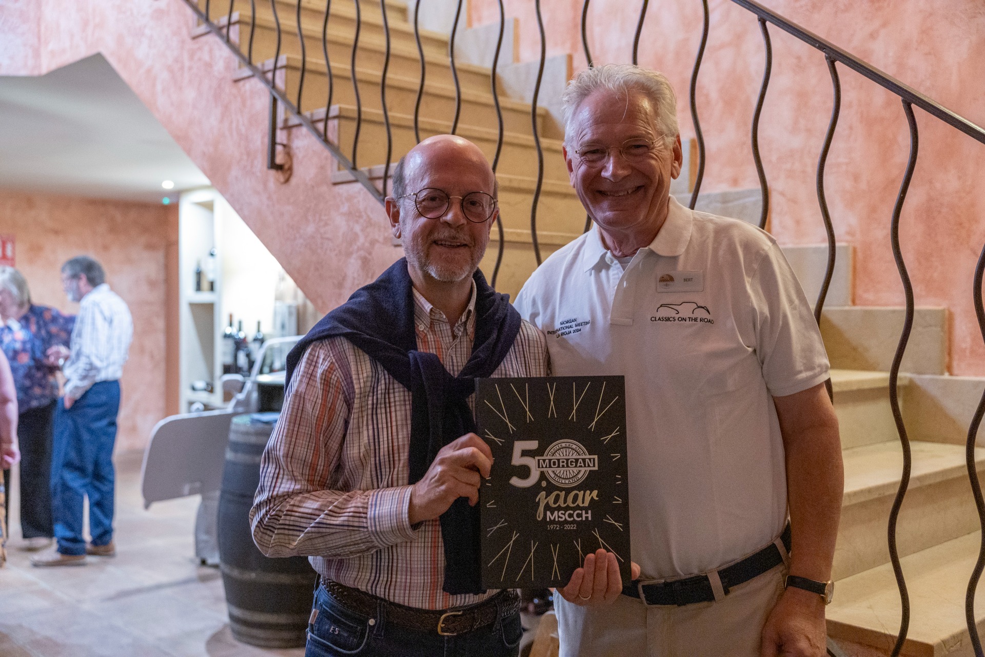 La cena del sábado fue un evento muy especial, organizada a modo de gala y como despedida para los participantes nacionales, algunos de los cuales concluirían su viaje al día siguiente. Durante la noche, se entregaron premios y distinciones, incluidos reconocimientos a quienes habían viajado desde más lejos. Nuestro Club recibió un obsequio conmemorativo del club holandés, un libro que celebra el 50 aniversario del Club Morgan en Holanda, una comunidad que apoya y comparte la pasión por los vehículos clásicos.