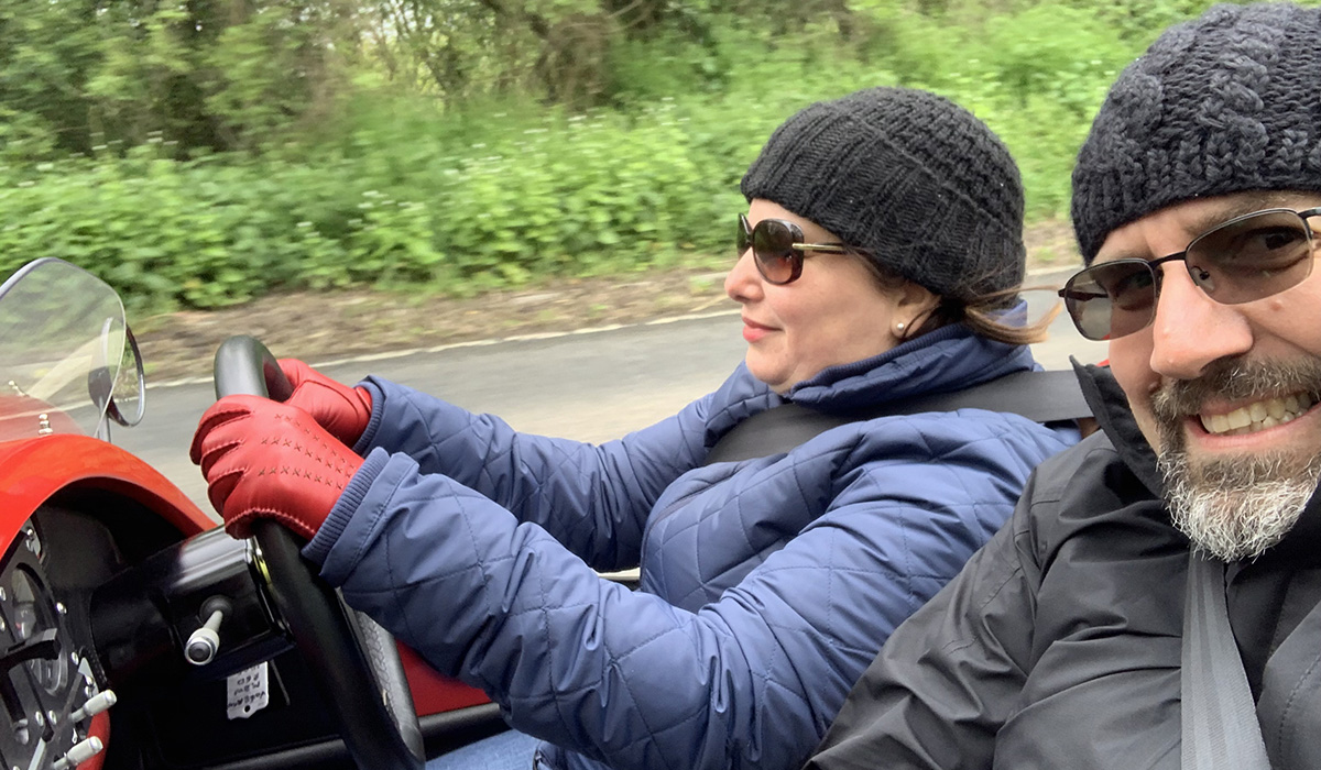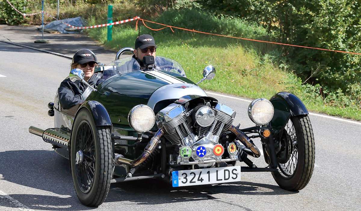 Empezaron a buscar opciones; descapotables, biplazas, bonitos, elegantes, lo que encontraban se les salía de presupuesto, no querían un Ferrari ni nada ostentoso… y de repente, entre las búsquedas vieron la foto de un three-wheeler, de un Morgan three-wheeler. – “fue como, ostras, pero ¿esto qué es?” – nos cuenta Javier – “¿esto existe…? A ver si esto se puede conducir, ¿qué es esto? Así que me metí en foros, empecé a preguntar sobre la fiabilidad del coche, si la gente hacía realmente excursiones con él, o si era un coche solo para ir a por el pan los domingos…”
