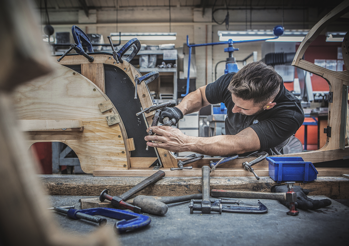 Steve nos confiesa – “La estructura de madera en el coche es un elemento muy importante para nosotros y no sólo por el carácter que imprime al vehículo, sino que también actúa como un buen elemento de seguridad. Muchas empresas fabrican elementos con madera porque es un material natural, absorbe energía, es fácil de trabajar y permite un trabajo artesanal. Hacemos muchas pruebas con nuestros vehículos y es curioso, pero muchas de nuestros ensayos se hacen en España, muy cerca de Barcelona. Hacemos muchas pruebas en unas instalaciones fantásticas donde no sólo operamos nosotros, también lo hacen muchos fabricantes a nivel mundial que utilizamos el mismo centro de pruebas. Encontraremos el camino para seguir diferenciándonos en la manera en la que fabricamos nuestros coches, conservando nuestras habilidades artesanas y combinándolas con la tecnología.”
