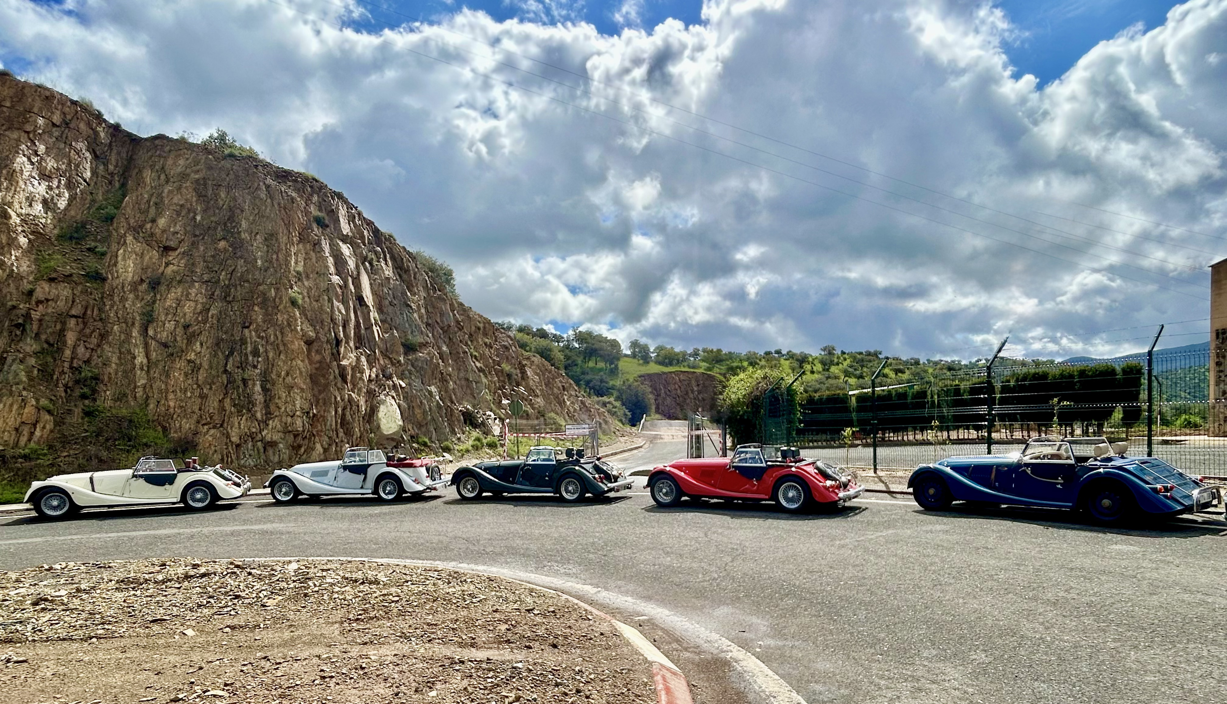 El resultado: una salida absolutamente improvisada, pero impecable. En lugar de las rutas iniciales, los ocho coches —seis Morgan y dos vehículos de apoyo conducidos por amigos del anfitrión— recorrieron la espectacular zona de Solana del Pino, atravesando parajes de montaña aún frescos por las últimas lluvias, y disfrutaron de una jornada única en las Lagunas de Ruidera, donde el sol, inesperado y bienvenido, acompañó durante todo el día.