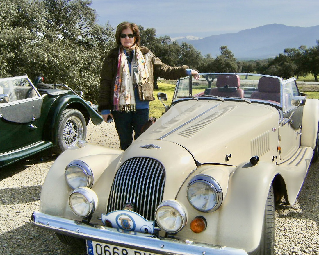 Cuando hablas con Nuria Vila, notas que es una persona tranquila, con una voz pausada y de sonrisa fácil, pero a poco que avanza la conversación, descubres que Nuria es una apasionada del Morgan, de las dos y de las cuatro ruedas y que es “imparable”. Esta barcelonesa, que estudió puericultura y que trabajó en la guardería de la Caja de Pensiones no ha parado de correr en rally, viajar en moto o recorrer Europa en Morgan – “no paro” – nos confiesa – “a pesar de tenerle respeto a las motos, tras una pequeña caída, me encantaba viajar con Eduardo en nuestra BMW Adventure, con aquellas maletas enormes con el equipaje y recorrer kilómetros y kilómetros. Ahora ya solo viajamos sobre cuatro ruedas, pero nada me para, tuve una fractura complicada esquiando hace un par de años, y ahora he vuelto a esquiar, con cuidado, pero ahí estoy, sin parar…”
